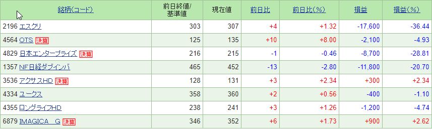 で、本日の保有銘柄情報はこちら↓