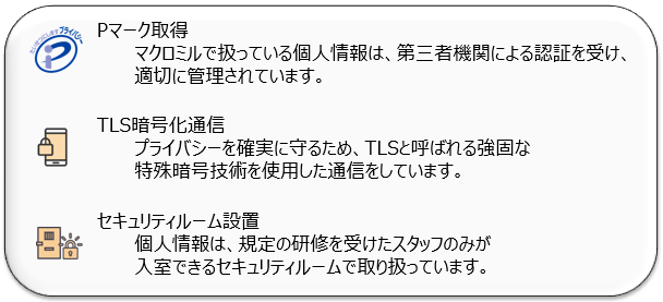 まず、マクロミルは東証一部上場企業であるということ。これによって、社会的な信用を得られているということは、その社会的な信用を失わないようにするための努力が求められることに他なりません。ということで、セキュリティ対策も以下のようなことをしっかり行っています。